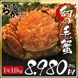 幻の超特大毛ガニ姿1尾1kg×5 41,800円