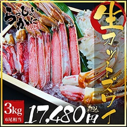 人気のカットズワイの贅沢3kgセット!鍋や焼いたり食べ方色々!そのままでも美味しく頂けます。かにが初めての方でも食べやすく当ショップ通販ランキングでも上位のかにセットです。