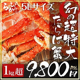 幻の超特大タラバガニが5つ入った超特大プレミアムセット!このサイズのタラバガニは希少価値高く中々お目に掛れません!身入りも抜群で見た目の大きさに驚くこと間違いなしです。