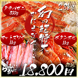 タラバガニ800g、カットズワイ1kg、ボタンエビ(オスメスmix)1kg