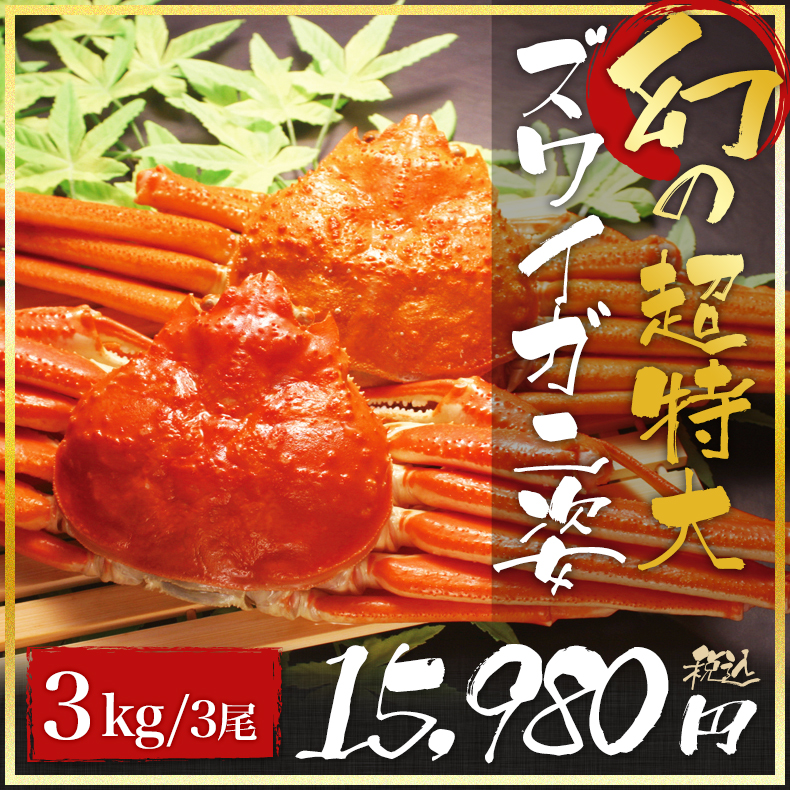 幻の超特大1kgズワイガニ姿×3