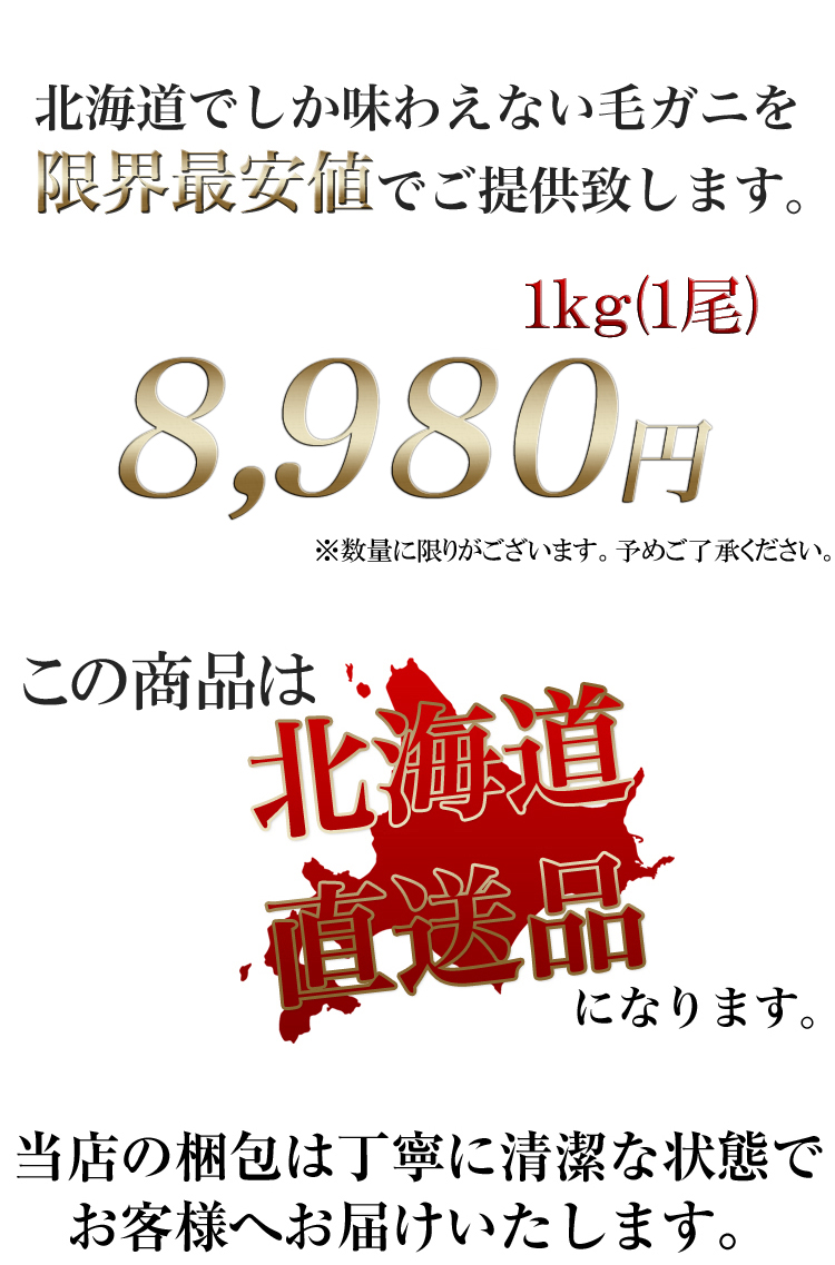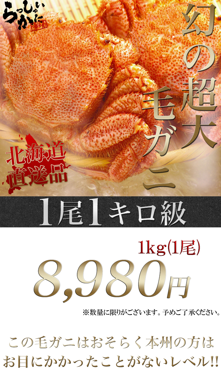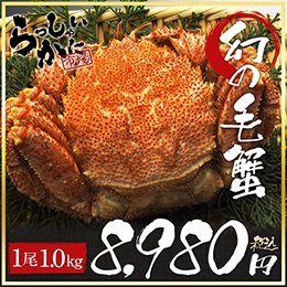 超特大サイズのオホーツク海で取れた毛ガニの1kgです。