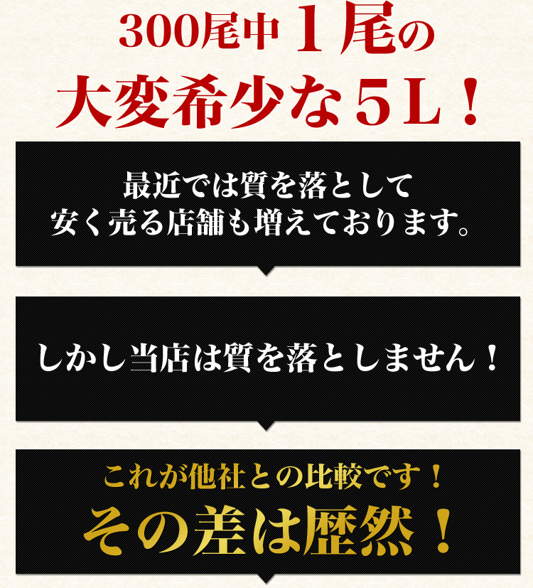 【訳あり】を一年に一度のご家族団らんの日に食すのに抵抗がある方やギフトに送るのに訳ありが嫌な方にお勧めです。