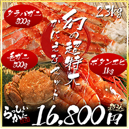 かにえび幻の超特大セット タラバガニ800g 毛ガニ500g 幻のボタンエビ1kg(オス500gメスたまご付き500g)565,000円